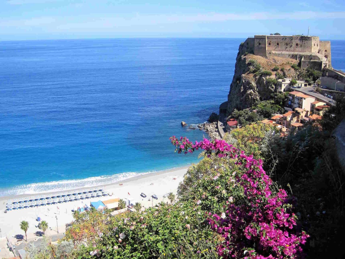 Il Castello dei Ruffo di Calabria, skyline della Costa Viola da millenni, suddivide Marina Grande dalla vicina frazione di Chianalea, Borgo inserito fra ” I Borghi più Belli d’Italia.