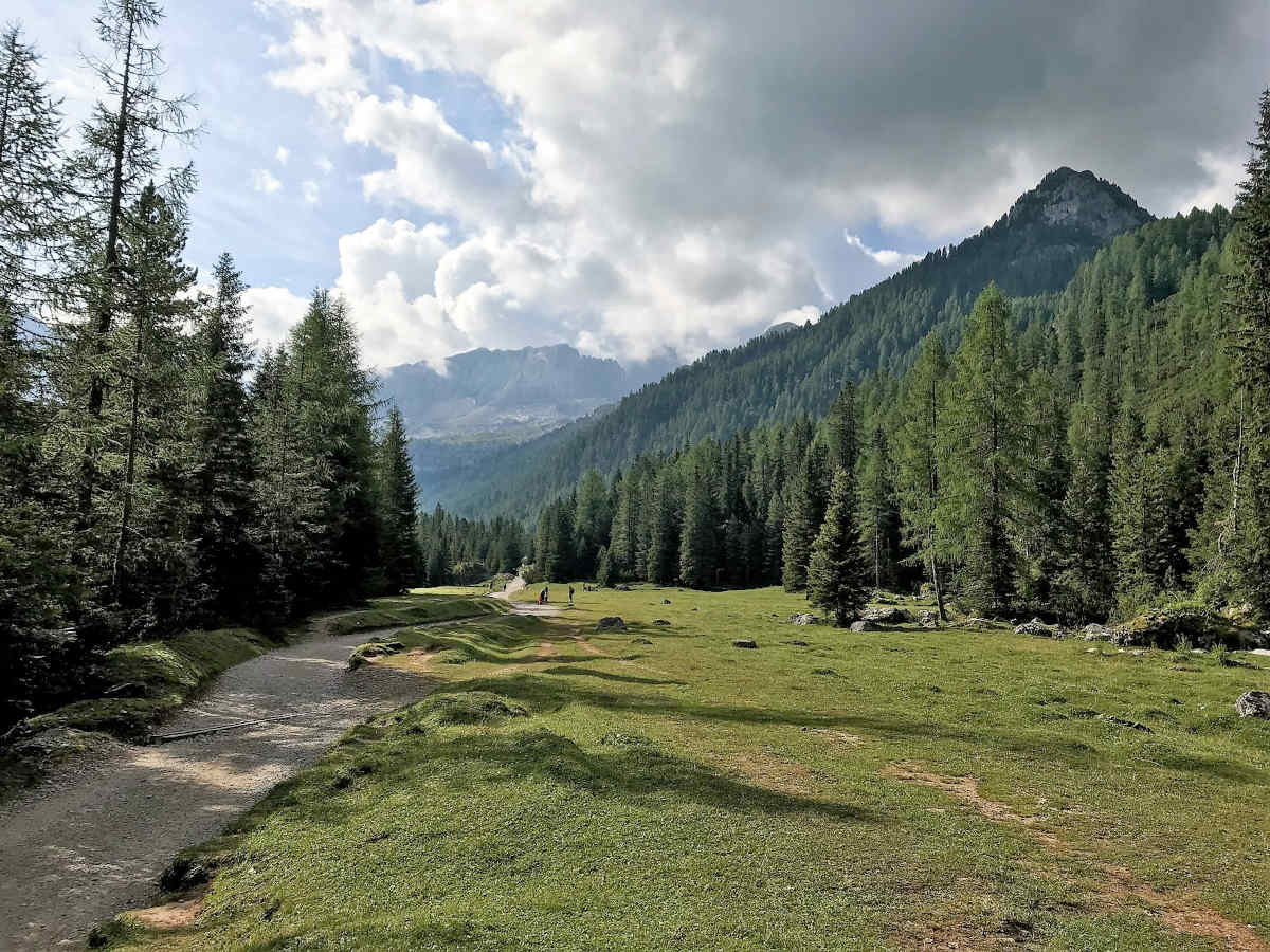 Il trekking attraversa la verdeggiante Val Contrin. Già solo la prima parte dell’escursione può essere soddisfacente, per chi preferisce una giornata attiva ma non eccessivamente faticosa.