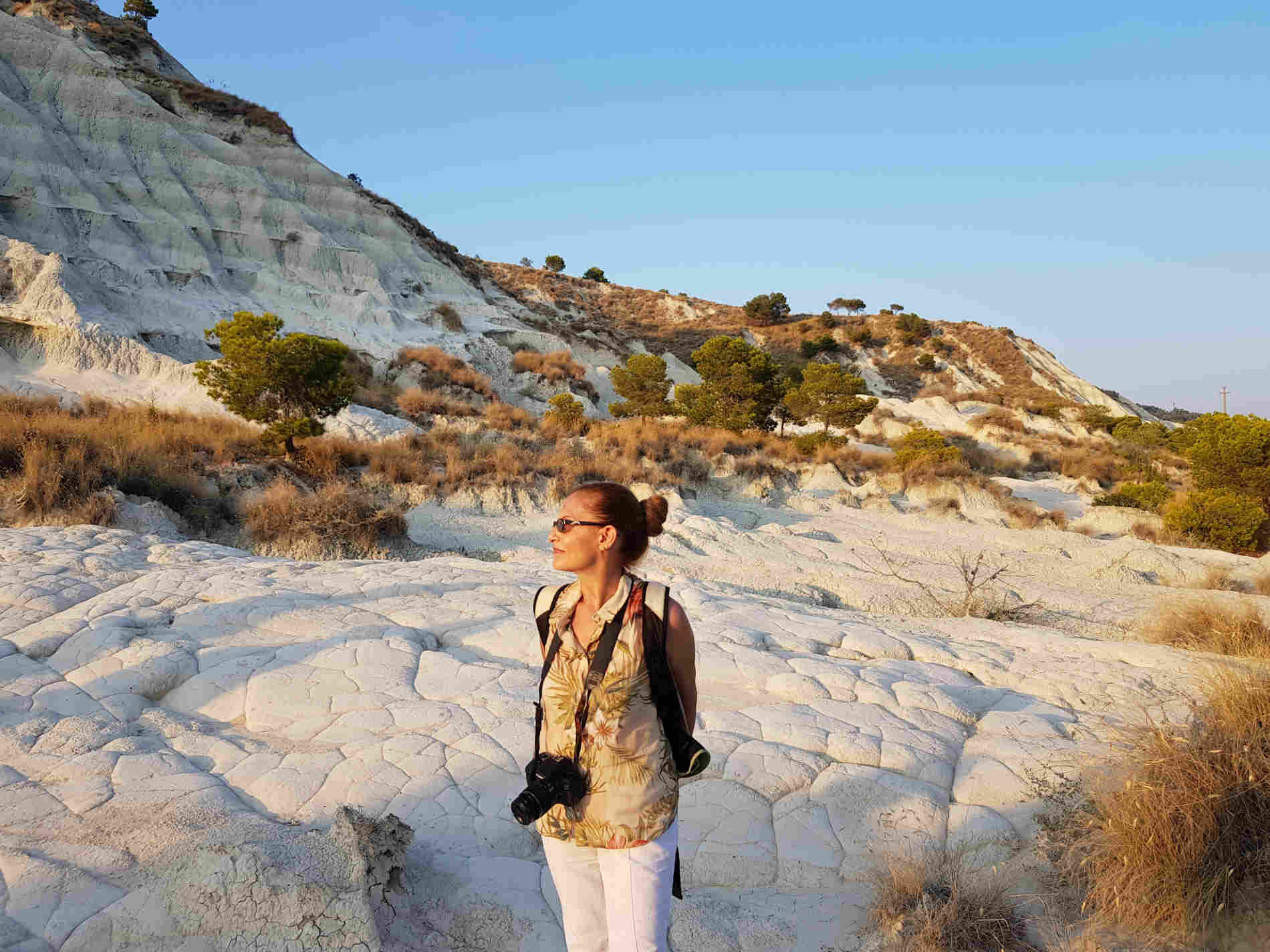 Anche se il sentiero non è lungo, vi consiglio di portarvi dietro dell’acqua, gli occhiali da sole e una crema contro le scottature. In estate le temperature possono essere davvero molto alte. Il colore bianchissimo dei calanchi, soprattutto nelle ore centrali della giornata, amplifica notevolmente il senso di “abbacinamento” e le scottature!
