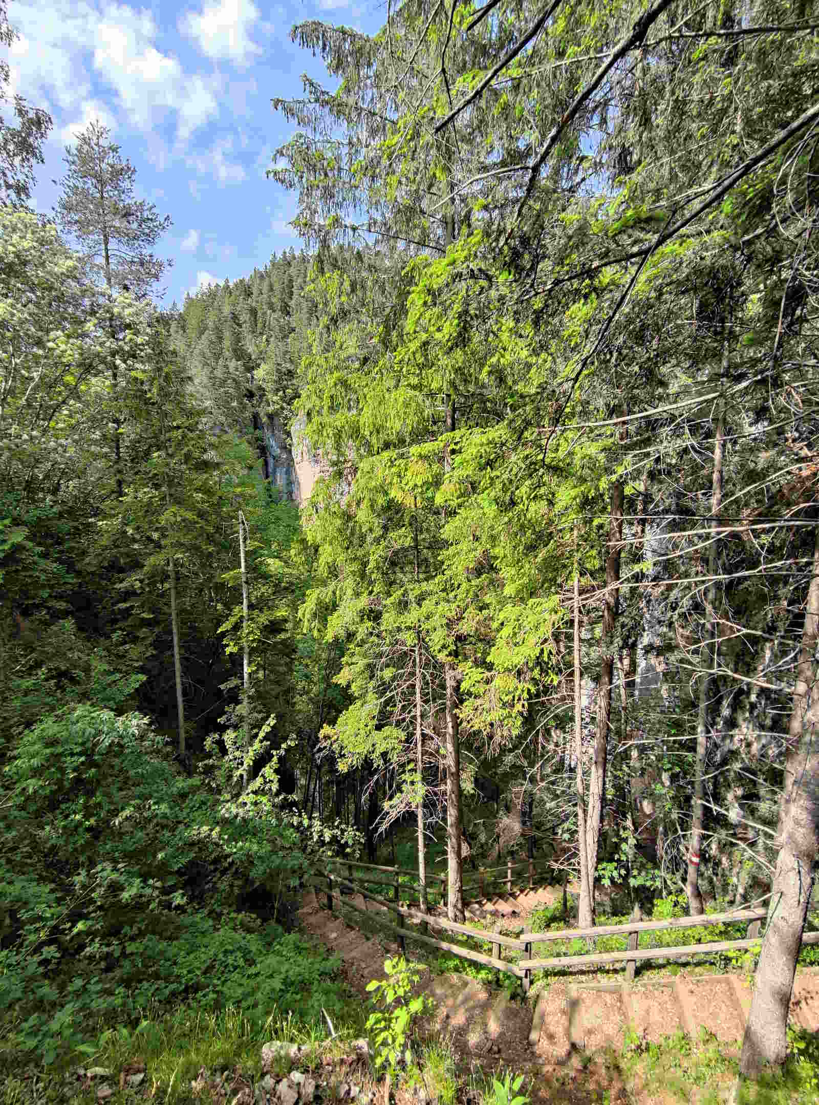 Vi invito però a soffermarvi, per ammirare con il naso all’insù, la bellezza della ripida gola e gli alberi che con essa rivaleggiano! In bellezza ed altezza!